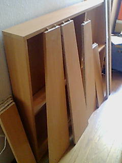 仕事が忙しいのと、子ども会のお祭りのお手伝い(←これはかなり前から約束くしていたのでしょうがない^^;)と。そうした状況下において、本棚の組み立ては難易度低目★★ではありましたが・・・私にひと時の安らぎを与えてくれました。